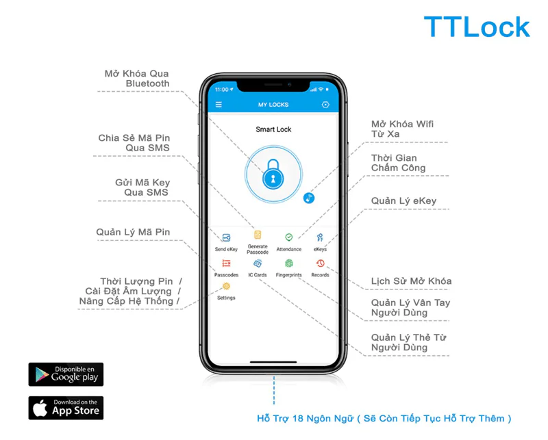 Khi khóa được thêm thành công, người dùng có thể quản lý khóa bằng ứng dụng bao gồm thêm, xoá vân tay; cài đặt mật mã, gửi mật mã, chia sẻ ekey (mã kết nối ứng dụng cho thiết bị di động khác)…