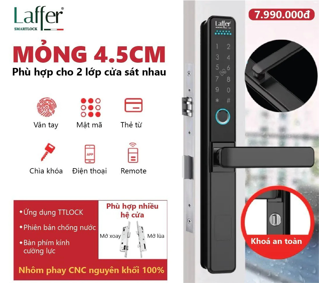 Thông số kỹ thuật Khoá vân tay Laffer R12 dành cho 2 cửa sát nhau